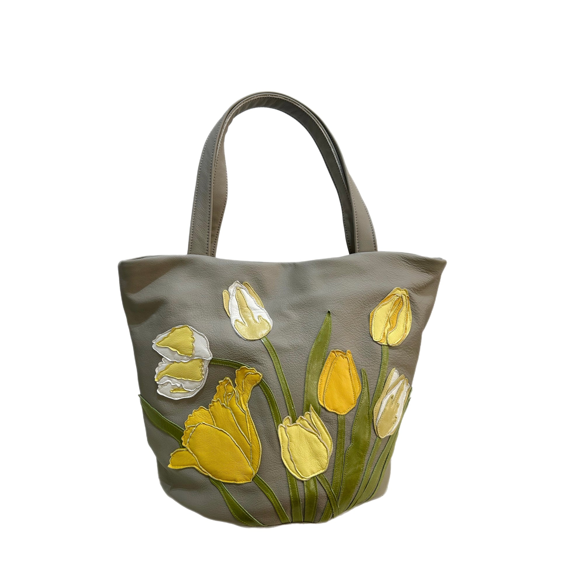 Appliquéd with a radiant yellow tulip design.